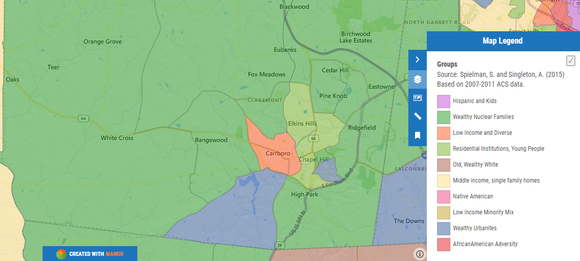 Let's look at Chapel Hill, North Carolina and the areas surrounding the town. Inhabitants include low-income individuals to the East, wealthy urbanities and, further out, wealthy nuclear families. As socio-landscapes continue to rapidly change, there is a need to go beyond the urban/suburban dichotomy to holistically encapsulate the diversity of demographic makeup caused by urbanization.